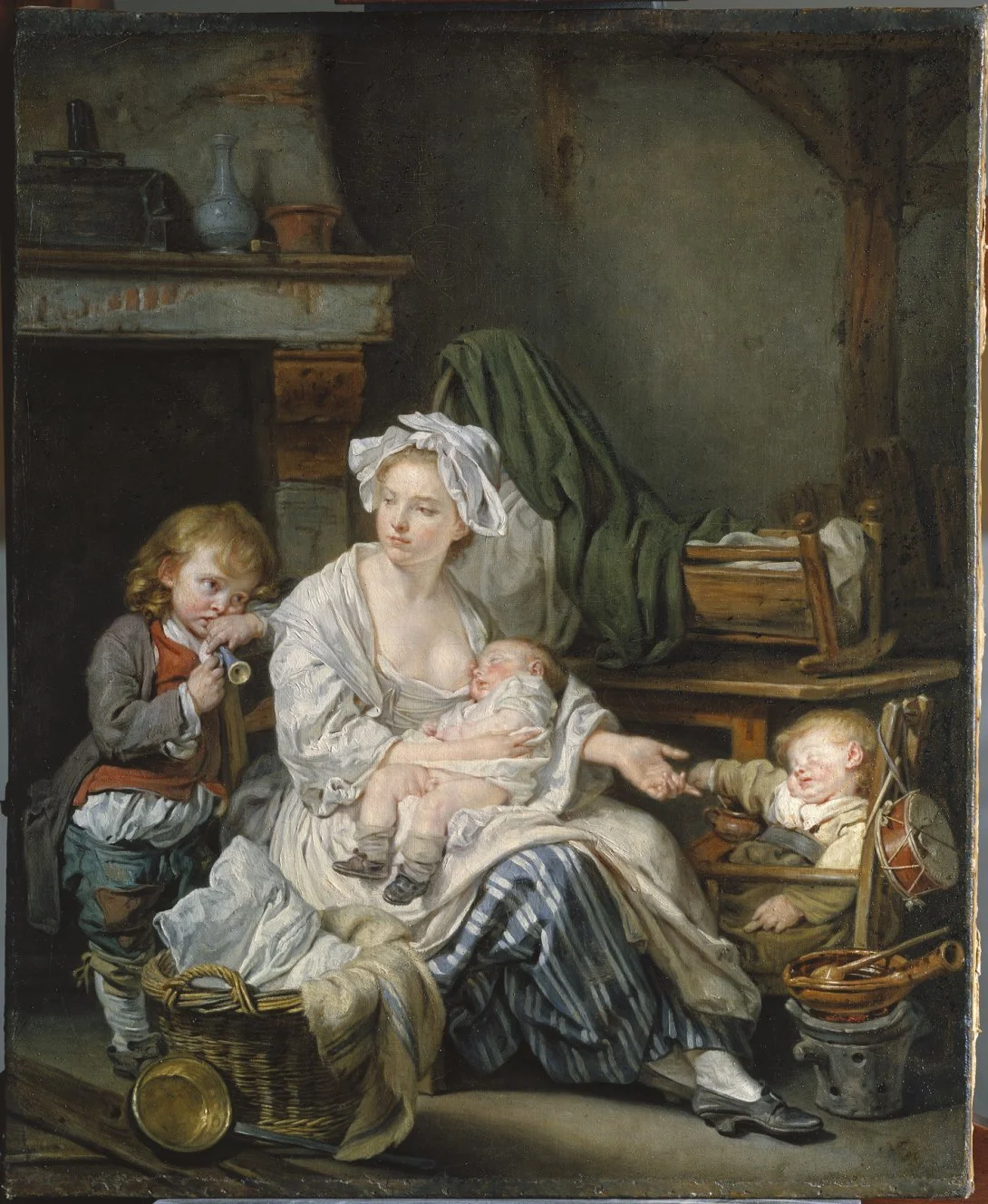 L’allaitement est recommandé par Diderot, Rousseau et Greuze lui-même. C’est un moment dépeint comme un temps essentiel à la construction d’une relation saine entre l’enfant et la mère.