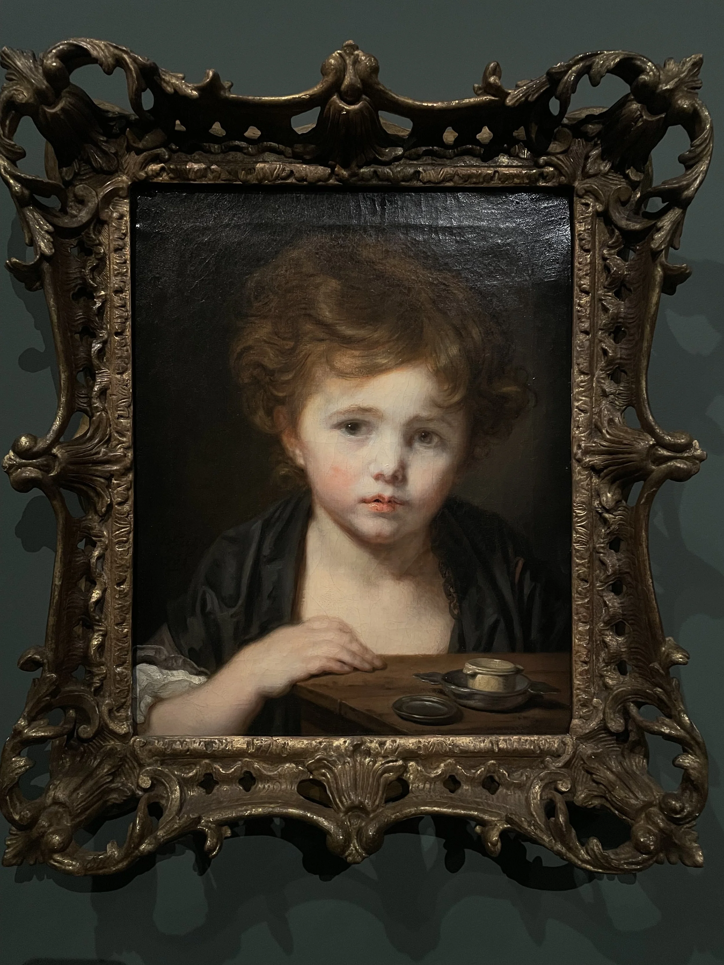 L’oeuvre coup de coeur de cette exposition, à ne surtout pas rater, essentiellement parce qu’il vient de loin mais aussi parce qu’il dépeint un petit garçon malicieux, une mère forte et deux petits bout de chou endormis. Le Repos, dit aussi Le Silence (1759, Londres Burckingham Palace) nous plonge dans le quotidien d’une maman ou d’une nourrice. Toute une narration est faite à travers les regards et les gestes, la scène est presque audible. Le plus jeune enfant, dans les bras de la jeune femme est endormi après l’allaitement, le second, sur la chaise s’endort aussi paisiblement. Le plus grand est accoudé, d’un geste provoquant, porte un jouet trompette à la bouche. La jeune femme regarde dans sa direction, d’un bras lui montre son frère endormi, lui interdisant de le réveiller.
